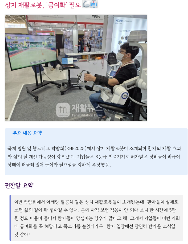 상지 로봇물리치료, \'급여화\' 필요