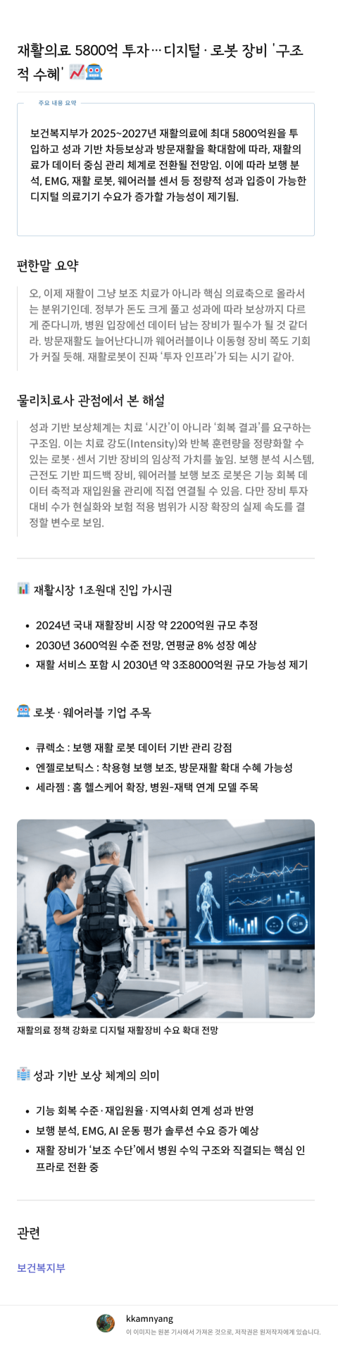 재활의료, 이제 핵심 축으로... 5800억 수혈에 로봇·AI 시장 '들썩'