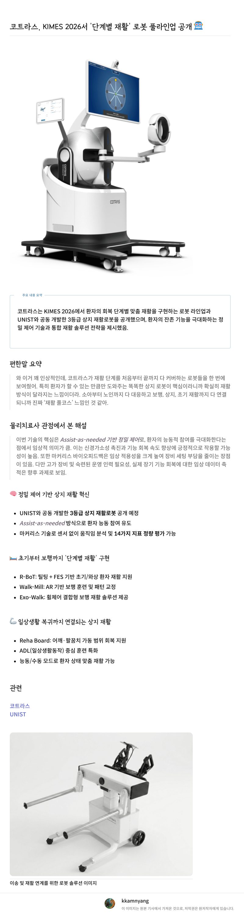 UNIST 공동 개발 3등급 의료기기 상지 재활로봇 첫선