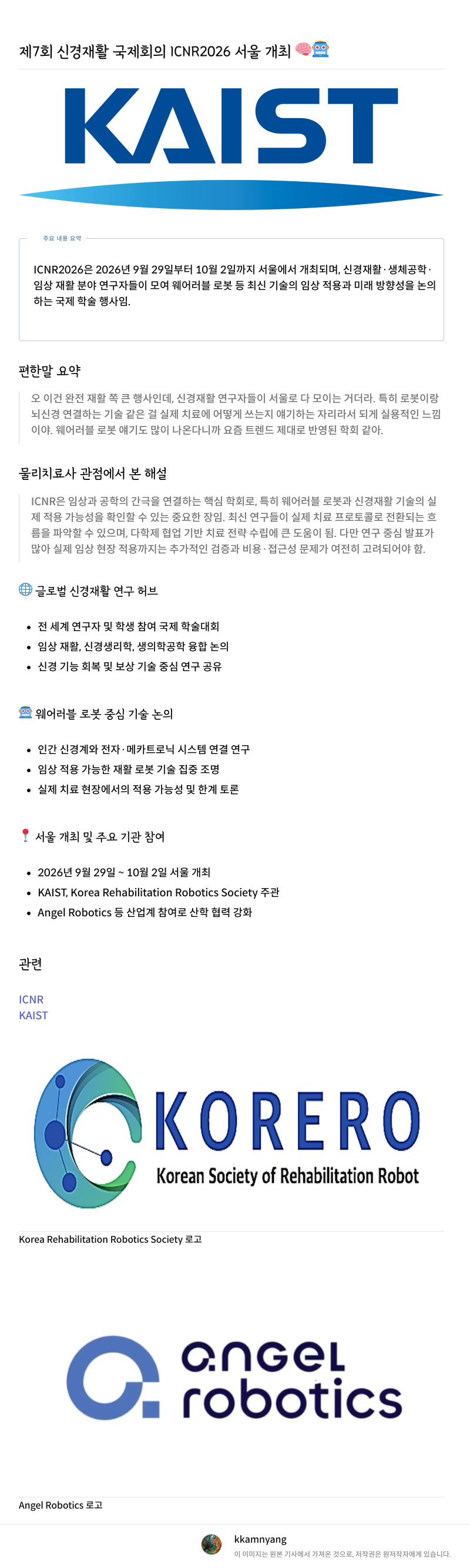 [출처] ICNR2026 - International Conference on NeuroRehabilitationhttps://2026.icneurorehab.org/
