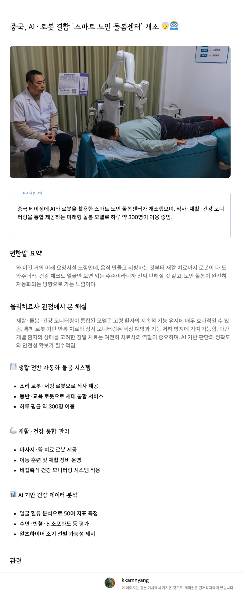 中, AI 노인돌봄센터 오픈…로봇이 조리부터 마사지까지