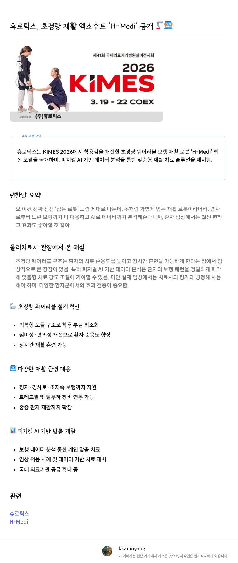 휴로틱스, 'KIMES 2026'서 'H-Medi' 신형 수트 최초 공개
