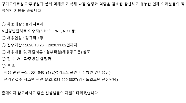 경기도의료원 파주병원 물리치료사 채용공고 [마감]