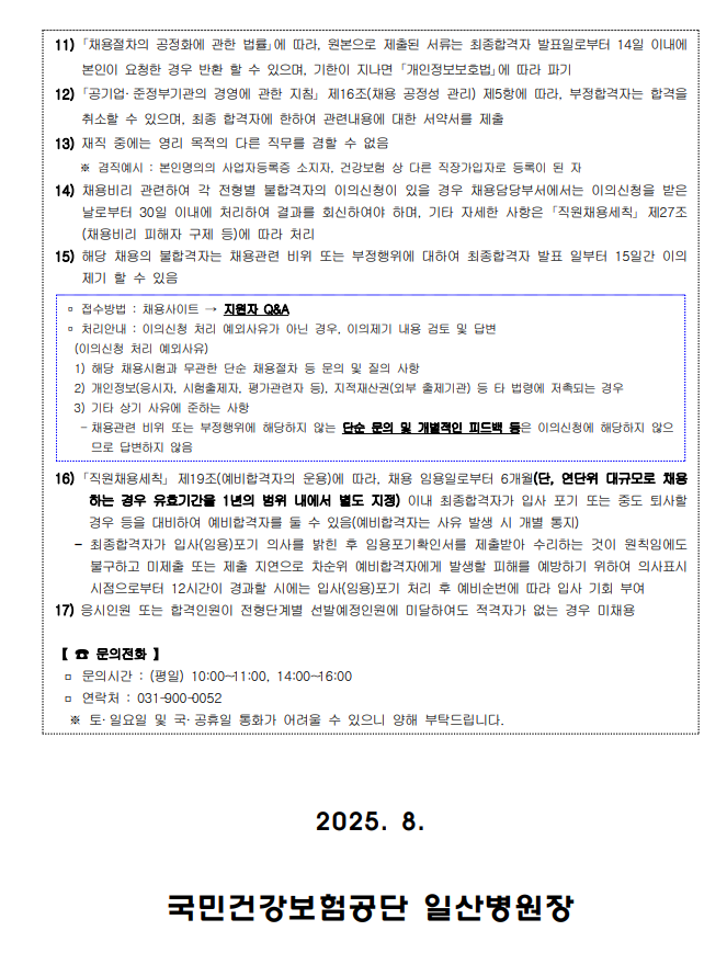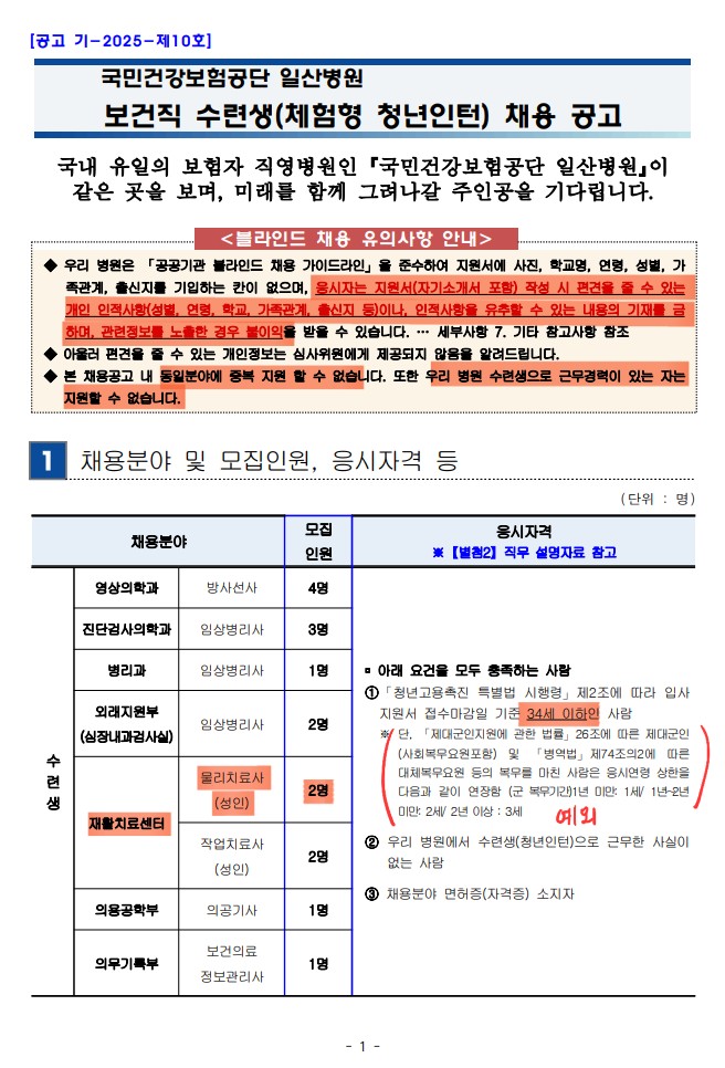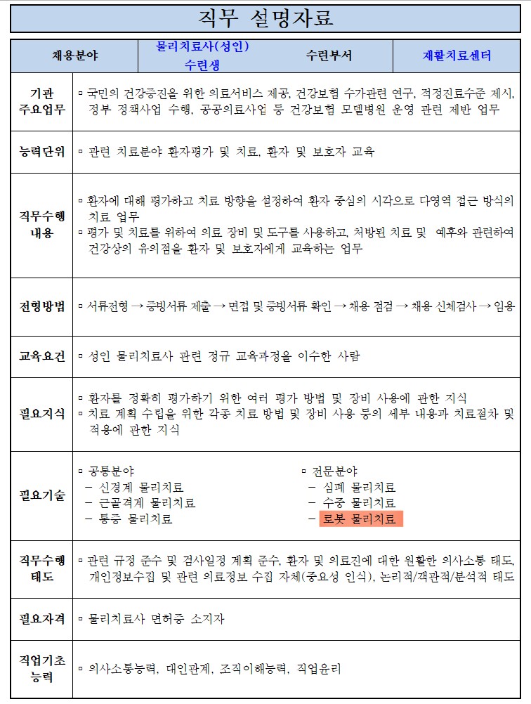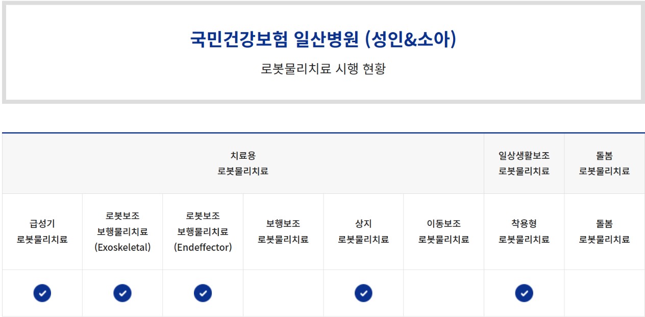 [국민건강보험공단 일산병원] 2025년도 하반기 보건직 수련생(체험형 청년인턴)모집_치료용 로봇물리치료기기, 착용형 로봇물리치료기기 보유 (~8/20) 김도희 │ 2025-08-08 HIT 379 |