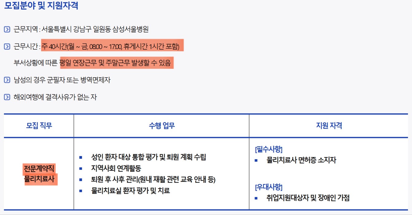 [삼성서울병원] 물리치료실 물리치료사 경력직 채용_치료용 로봇물리치료기기, 착용형 로봇물리치료기기 보유 (~8/17) |