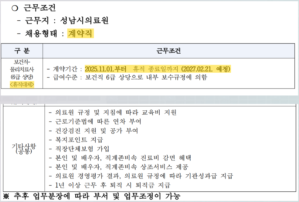 [성남시의료원] 물리치료사(휴직대체)채용_치료용 로봇물리치료기기 보유(~9/14) 김도희 │ 2025-08-30 HIT 458 |