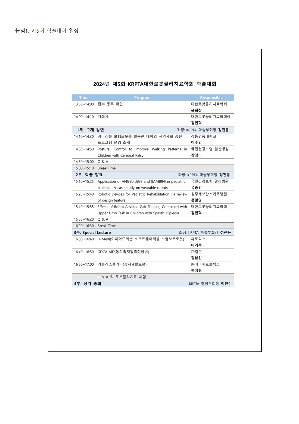 제5회 학술대회-상지과제결합 로봇보조보행훈련이 경직형 양하지마비아동의 근긴장도, 균형과 상지기능에 미치는 효과 (대한로봇불리치료학회장 김민혁) |