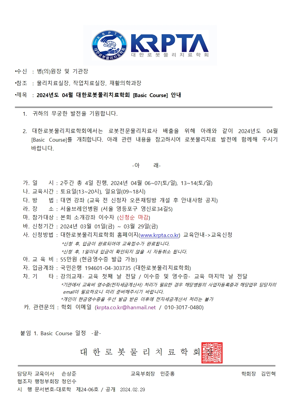 [공문][KRPTA 대한로봇물리치료학회] 24년도04월 Basic Course 개최 안내.pdf